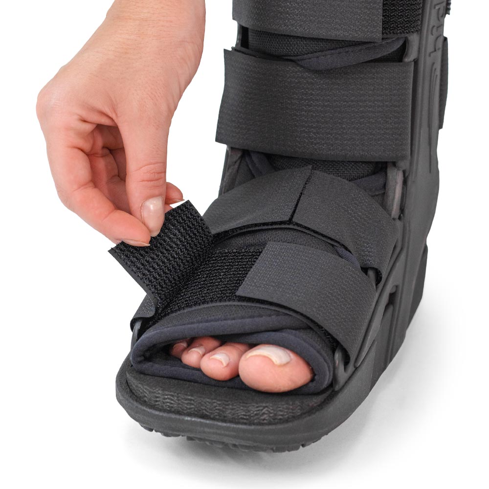 Indicação bota ortopédica curta – Opção mais comum para entorses em graus leves e moderados, fraturas estáveis e menos complexas, em especial as fraturas de dedos ou metatarsos (ossos que estão entre o tornozelo e os dedos do pé).