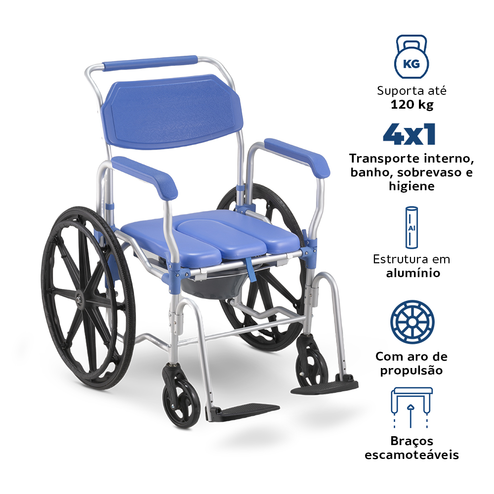 - O produto conta com rodas com aro de propulsão de 24’’ polegadas para maior mobilidade;